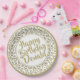 This over-the-hill design has a gold and white random number pattern with a white milestone number 65 repeated in varied sizes and angles. There is a white circle in the centre for your text and gold and white rings around the rim.