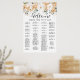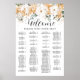 An elegant border of gold and white flowers nestled in green foliage starts off this Quinceanera alphabetical seating chart. Welcome is written in a popular trendy script font. Four columns let you easily add names and tables to list. If you need more room you can make the text smaller.
