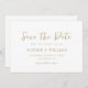 Featuring gold, this beautiful wedding save the date card can be easily personalised with all the information about your special wedding day. Matching products available in our store.