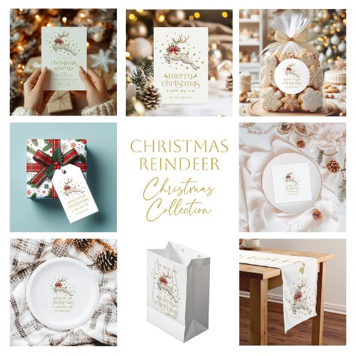 This must have Christmas paper cup features a stunning gold and white reindeer, adorned with a red Christmas bow, and complemented by sophisticated gold typography. Make it your own by changing customizable text.