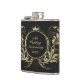 Gold & White Faux Glitter Floral Frame Hip Flask