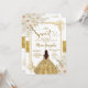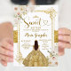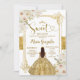 Gold & White Flowers Sweet Sixteen Gold Crown Birthday Invitation