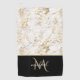 Gold & White Marble with Black Monogram Luxury Golf Towel