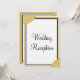 Wedding Reception is written in elegant black script against crisp white background. Gold and black colours geometric border. Faux flap scalloped edges for a modern elegantt feel. Large Monogram on back in gold colour script. Personalise reception date and details. Designs by TamiraZDesigns.