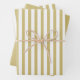 Coordinating gift wrap for all occasions. This is a simple stripes pattern in a gold and white all-over print. There are two sheets with stripes and one solid gold coordinating sheet.