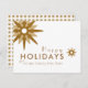 Stylish holiday card featuring a snowflake and starburst design in a gold and white colour palette. Happy Holidays presented in stylish font. Customise and personalise your card with your company name and custom message using the fields provided. One design of a coordinating collection. This non-photo card is ideal as a corporate card to send Christmas greetings or happy holidays and well wishes to associates and clients.
