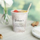 This stunning First Holy Communion paper cup features white celestial stars on a gold background with black text.