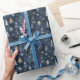 Gold & White Trees, Stars on Dark Blue Background Wrapping Paper