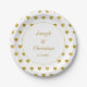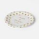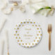 Gold White Wedding Paper Plates with Gold Hearts Pattern on a White Background.