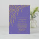 Ornate gold foil wedding invitation done in lavender, with gold foil willow branches and custom text. Personalise the foil text to suit your wedding needs.
