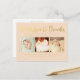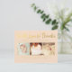 Faux gold foil script cursive elegant lettering on the front of this designer postcard onto which you add your own new baby photo portraits. Holds 3 baby photos. Easily and quickly personalise this designer professionally printed thank you/sip and see postcard here and now by just typing over the example text and adding your own photographs. Elegant, chic, simple and classy gold script/cursive typography.