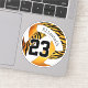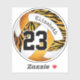 This wild zebra stripes girl's volleyball sticker features a bold zebra stripes accent pattern on four of the volleyball's panels - the zebra stripes panels plus three other panels have an orange/gold background that contrasts with the remaining white volleyball panels - customise with player name and jersey number - by katz_d_zynes