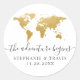 Faux gold world map destination wedding travel themed favour label for a modern and reception or party. Fonts and colours can also be edited to work with any colour scheme.