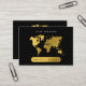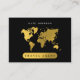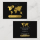 A beautiful design incorporating a gold world map. The elegant design is complimented by a gold and black accents. A simple and professional way to introduce your business. Social media icons included in the design of this business card for you to use. Personalise your details to create your own unique business card. A perfect business card for businesses related to travel agent, ticket booking, vacation organisation services.