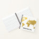 Gold world map travel notes personalised. Personalised with your name. Great gift for travelers.