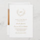 Elegant wedding save the date featuring a clean and timeless design with your monogram inside of a wreath crest. The back has your favourite photo and personalised message.