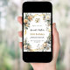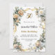 A white background. Decorated with white and yellow florals and a golden ribbon. Personalise and add your name, age and details.