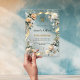 A clear, transparent background. Decorated with white and yellow florals and a golden ribbon. Personalise and add your name, age and details.