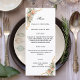This customisable dinner menu coordinates with matching invitations, place cards, and other party stationery to create a polished and cohesive event look.