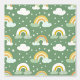 Gold Yellow Rainbows, Clouds & Stars on Green Wallpaper