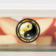 Jewellery, gold and black yin yang symbol on a black background. Gold yin yang.