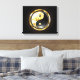 Jewellery, gold and black yin yang symbol on a black background. Gold yin yang.