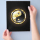 Jewellery, gold and black yin yang symbol on a black background. Gold yin yang.