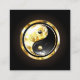 Jewellery, gold and black yin yang symbol on a black background. Gold yin yang.