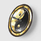 Jewellery, gold and black yin yang symbol on a black background. Gold yin yang.