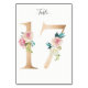 Golden number with soft pastel floral embelishment table number card. Personalise text font style, size, and colour.