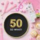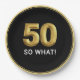 Celebrate a milestone 50th birthday or anniversary with a touch of humor and golden elegance! This striking design features a bold, shimmering gold '50' with the witty phrase 'SO WHAT!', all set against a classic black background. It's perfect for those who embrace turning fifty with a playful spirit. Make a statement and show that age is just a number with this unique design!
