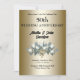 This elegant 50th Wedding Anniversary Invitation is designed with a bouquet of white tulips, on a gold coloured background. The front text includes the couple's names, event date, time, location and address. The reverse text includes the RSVP Details on a gold coloured background, with white tulips accent. To personalise, simply insert your details into our easy template, replacing the sample text. Be sure to view the additional pieces that match this Golden 50th Wedding Anniversary Collection.