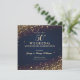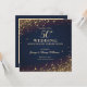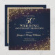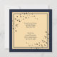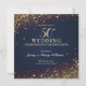 Golden 50th Wedding Anniversary Party Invitation designed on a dark coloured background with golden confetti dots and golden coloured text. The reverse side is decorated with golden highlights, dark coloured stars and text. To personalise, simply insert your event details into our easy template replacing the sample text.
