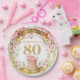 Perfect for serving appetizers, dinner, or desserts, these 80th birthday party plates are an ideal addition to your tableware setup. Their chic boho design and shimmering details make them a standout piece that pairs beautifully with matching napkins, cups, banners, and décor from the same collection.