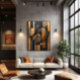 Geometric abstract art in gold, bronze and black tones with metallic textures. Circular and rectangular shapes create a dynamic and elegant composition. Contemporary Art Deco style perfect for modern decoration, offices and sophisticated spaces. Timeless sophistication in every geometric detail.