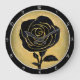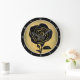 This sophisticated wall clock features a prominent black rose with elegant golden outlines and a textured, golden-hued background. The luxurious design exudes a sense of modern elegance and artistic flair, making it a perfect statement piece for chic and contemporary interiors. Edit colour of the clocks numbers in the Design tool to your favored colours.