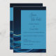 This wedding safe the date invitation captures the dynamic elegance of abstract ocean waves in rich shades of deep blue, accented with delicate golden highlights. The flowing, wave-like patterns evoke a sense of movement and depth, blending a serene marine aesthetic with luxurious gold details. Ideal for themes inspired by the ocean, night skies, or elegant contemporary artistry, this piece radiates sophistication and tranquillity. Perfect for those who appreciate refined and nature-inspired designs with a touch of opulence
