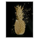 A golden pineapple on a deep green background with golden paint splashes. One of our most popular motifs and a real eye-catcher for your picture wall.