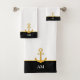Golden Anchor & Monogram on Black and White Bath Towel Set