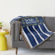 Golden Anchor on Blue Stripes Nautical Throw Blanket