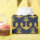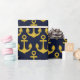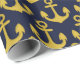 © 2017 Socialite Designs. Wrap your special gifts with this nautical themed pattern wrapping paper. The design incorporates a gold anchor with a navy-blue background.