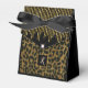 Beautiful favour box featuring printed golden sequins with diamond on upper and leopard print on front and back. Personalizable monogram letter is in a golden frame and black background. It's perfect for any occasion as birthday,wedding,anniversary and more