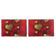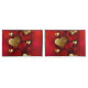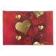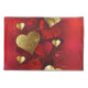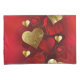 Vertical composition of red and gold, textured valentines made of foil and brocade on red background. Valentines day decorations.