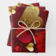 Golden and red valentines wrapping paper sheet