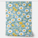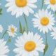 A cheerful floral pattern featuring white and yellow daisies scattered across a soft sky blue background. The delicate green stems and leaves add a fresh, natural touch, creating a light and uplifting springtime vibe. Perfect for fabric, wallpaper, or stationery.
