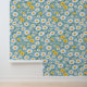 Golden and White Daisies Dancing on a Sky Blue Fie Wallpaper