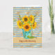 Golden Wedding Anniversary card with Sunflowers and Bees, a striped gold coloured background and other flowers. The words on the inside can be changed. Thanks to Creative Fabrica for some of the elements in the design.