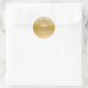 Round gold-coloured sticker with my design of two dolphins and a golden heart. Customisable text that says "50 Years".