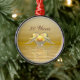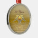 Hanging ornament with my original image of two dolphins and a golden heart on shining waters. Customizable text says "50 Years".