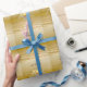 Unique wrapping paper with images of gold-coloured dolphins and a golden heart on shining waters. Customisable text says "50 Years".